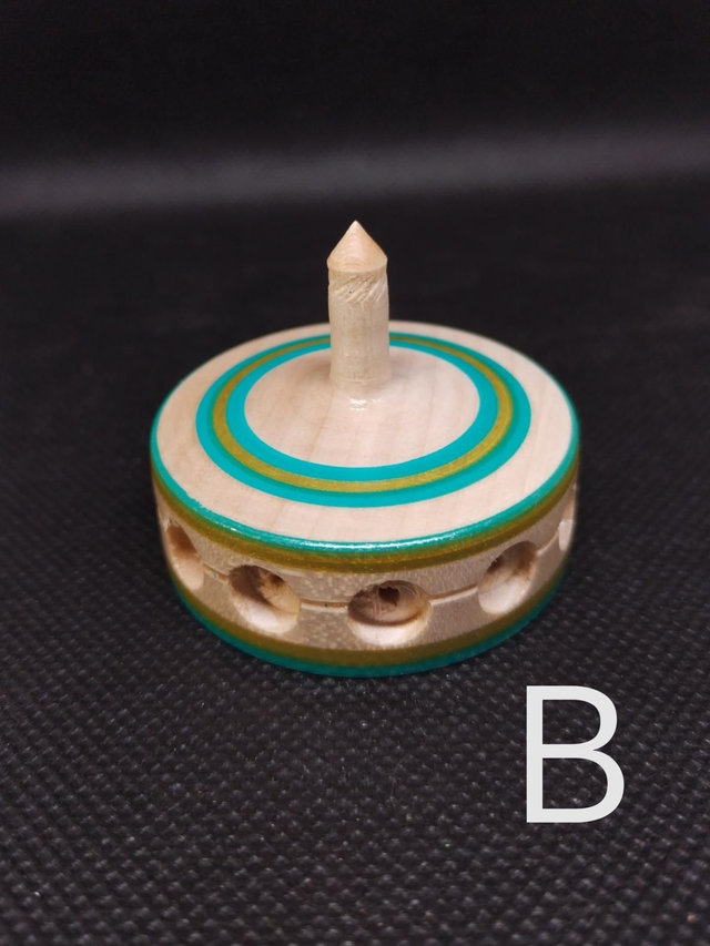 Toupie en bois, erable ou hêtre, peinture acrylique et cirée.